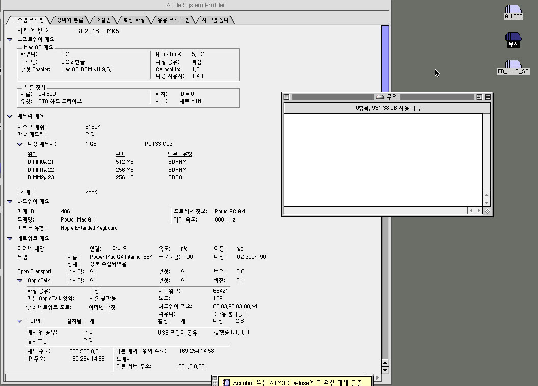 g4 800 에 os9.22 에 꼽아,,포맷하게.되었는데...원래.하드.용량,그대로,
