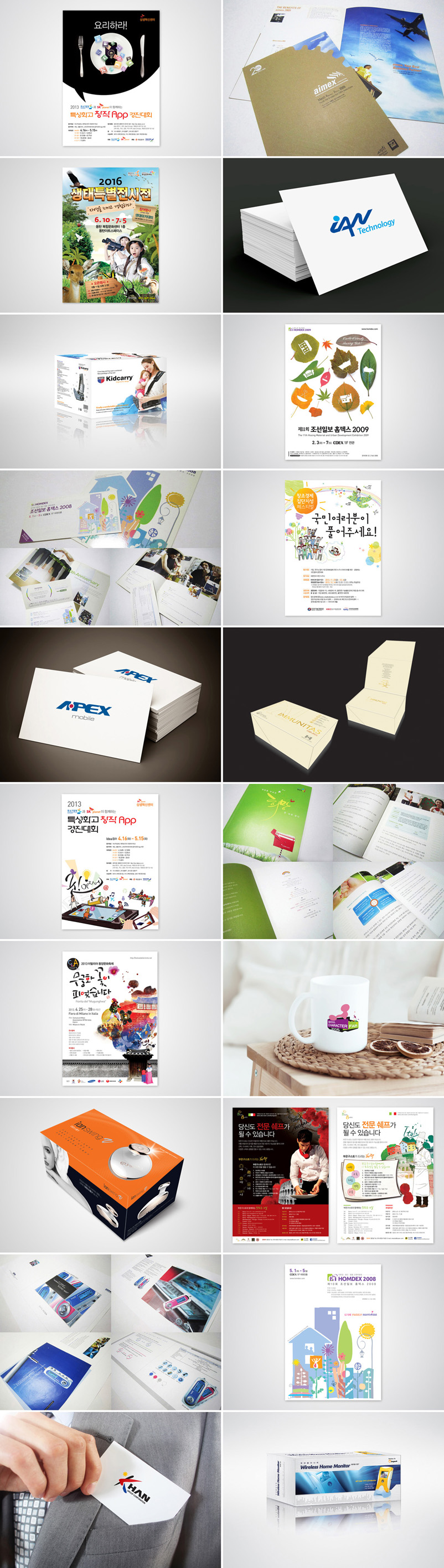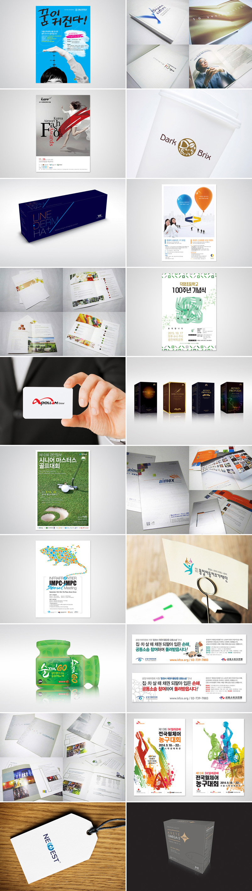 광고, 포스터, 브로슈어, 카탈로그, 리플릿, CI, BI, 패키지, POP, 옥외광고, 간판, 전단, 명함 등